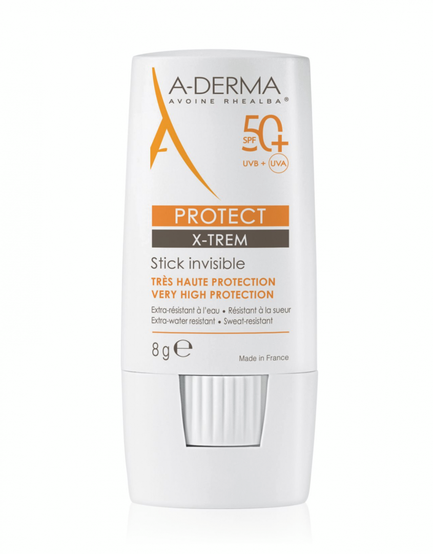 A-DERMA PROTECT X-TREM, stick invisível de proteção muito elevada SPF 50+, especialmente desenvolvido para as zonas frágeis localizadas (incluindo cicatrizes e tatuagens) expostas ao sol.