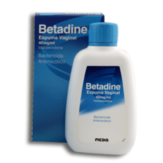 Indicações terapêuticas: Assépsia ginecológica. Desinfecção da vulva, períneo e face interna das coxas, antes do parto. Higiene íntima da mulher. Uma vez que actua sobre a maioria dos microorganismos causadores das infecções vaginais, o Betadine Espuma Vaginal ajuda a que os sintomas associados a estas infecções desapareçam mais rapidamente.