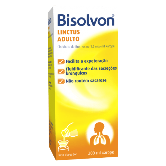 Indicado em situações de tosse com expectoração.Bisolvon Linctus Adulto provoca uma diminuição da viscosidade do muco e o aumento da remoção do mesmo, sendo esperado um aumento da expectoração e da tosse, durante o tratamento com Bisolvon Linctus Adulto.