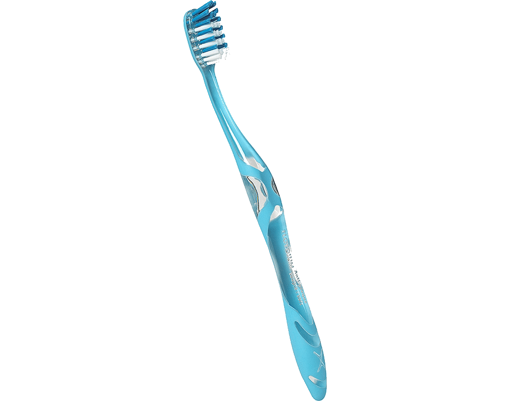 Escova de dentes com grau de dureza elevado, que permite uma remoção eficaz de resíduos e de bactérias, impedindo a formação de placa bacteriana.