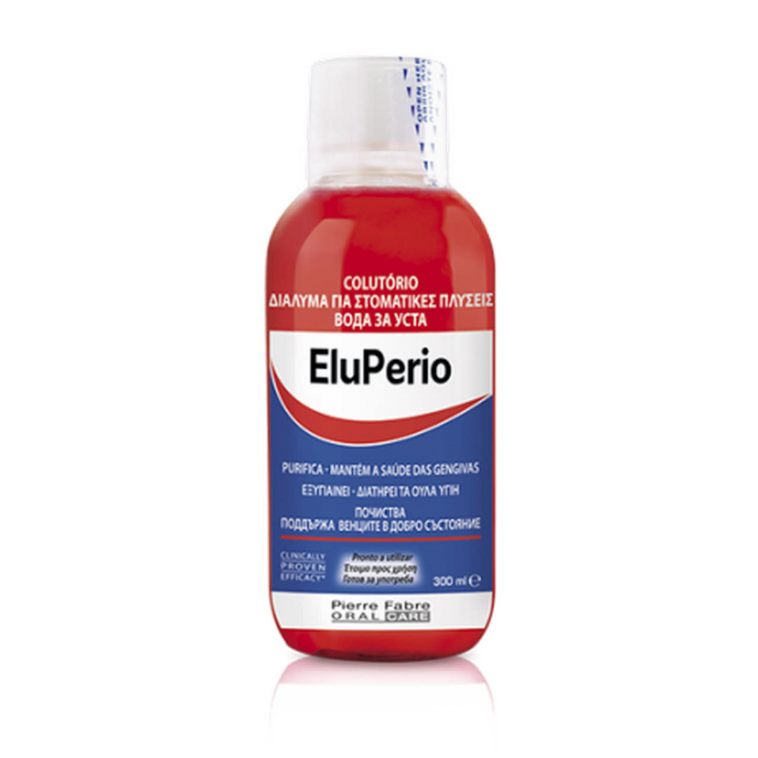 O colutório ELUPERIO ajuda a combater a formação da placa bacteriana e a prevenir o desenvolvimento ou agravamento dos problemas das gengivas, contribuindo para uma melhor saúde oral. ELUPERIO pode ser utilizado como complemento em tratamentos periodontais ou implantares.