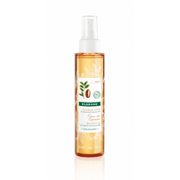 Klorane Óleo Sublimador Rico Flor de Cupuaçu nutre intensamente a pele seca a muito seca após o duche ou banho. Textura rica, não oleosa. Ingredientes de origem natural (98%)