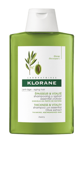 Klorane Capilar Champô Essência de Oliveira para cabelos com perda de densidade regenera o cabelo enfraquecido. Redensifica em profundidade. O cabelo recupera suavidade textura, densidade e vitalidade