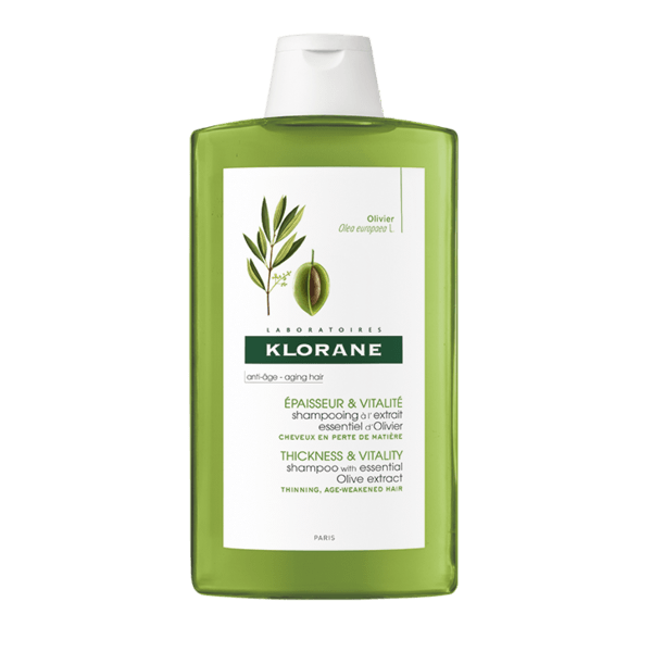 Klorane Capilar Champô Essência de Oliveira para cabelos com perda de densidade regenera o cabelo enfraquecido. Redensifica em profundidade. O cabelo recupera suavidade textura, densidade e vitalidade