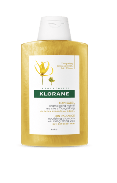 Klorane Capilar Champô Ylang Ylang para cabelos expostos ao sol nutre e protege a fibra capilar e a cor do cabelo. Antissal, antiareia e anticloro
