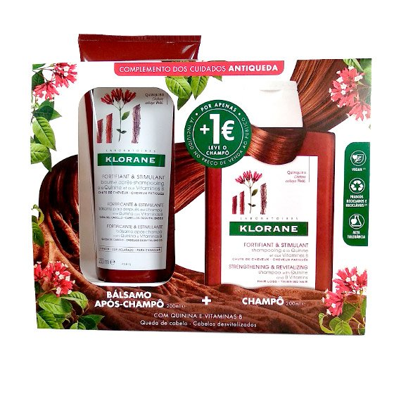Klorane Quinina Complemento dos Cuidados Antiqueda Bálsamo após-champô 200 ml + Champô fortificante 200 ml por Preço especial de 1€