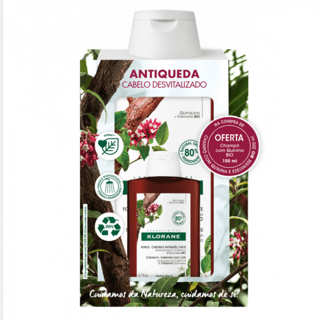 Klorane Quinina e Edelvaisse Bio Champô antiqueda cabelo desvitalizado 200 ml com Oferta de Champô antiqueda 100 ml