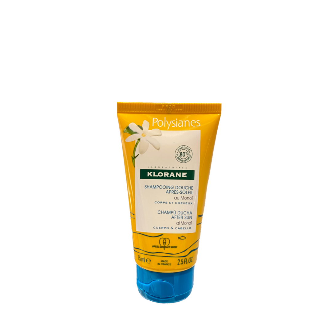 Cuidado depois do sol. Champô duche depois do sol com Monoi. Corpo e cabelo USO 2 EM 1