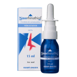 Substância ativa: Cloridrato de oximetazolina. Nasorhinathiol está indicado no alívio sintomático da congestão nasal, em casos de rinorreia e associada a estados gripais e constipações. A oximetazolina estimula diretamente os recetores a-adrenérgicos do sistema nervoso simpático e exerce pouco ou nenhum efeito nos recetores b-adrenérgicos. A aplicação intranasal de oximetazolina resulta em constrição das arteríolas dilatadas, redução do fluxo sanguíneo nasal e congestão. Para além disso, os canais osteo eustaquianos obstuídos podem ser abertos. A ventilação e arejamento melhoram temporariamente, contudo ocorre alguma vasodilatação compensatória e congestão. A oximetazolina não afeta a libertação de histamina estimulada por alergenos.