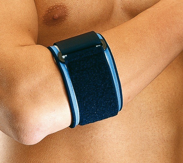 A braçadeira Orliman Neoprene Epicondylite tem efeito termocompressor, de descarga, proteção e suporte no braço. Com tira de velcro para ajuste e duas almofadas na zona do epicondil. Cor azul. Tamanho universal.