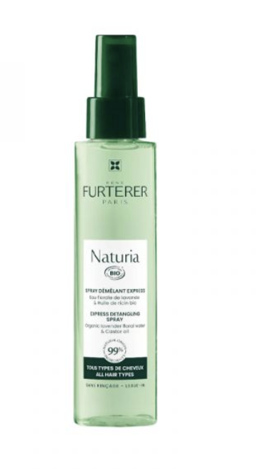 O spray expresso orgânico certificado que desembaraça perfeitamente todos os tipos de cabelo sem os pesar, conferindo-lhes um brilho imediato.