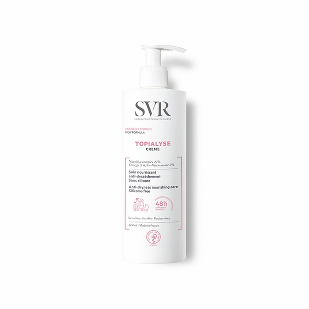 Adequado a crianças e mulheres grávidas com pele sensível. TOPIALYSE Creme é o cuidado corporal de eleição para a pele seca e sensível de toda a família. A sua fórmula nutritiva e suavizante alivia a sensação de repuxar da pele para um conforto imediato e duradouro. Hidratação intensa num creme aveludado: a textura ultra-fundente, não oleosa e não colante, permite vestir-se imediatamente após a aplicação. Uma nova fórmula, ainda mais limpa, com 98% de ingredientes de origem natural enriquecidos com manteiga de karité, manteiga de babaçu e óleos vegetais. No verão e inverno protege a pele dos fatores de secura (calor, frio, poluição, água quente, etc.).