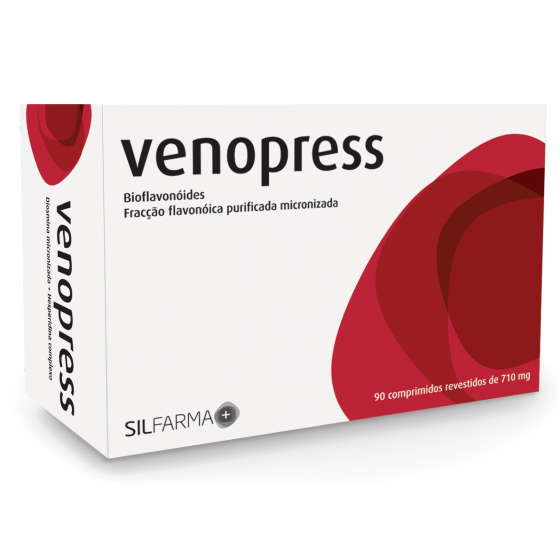 Venopress é um suplemento alimentar, indicado no tratamento de varizes e varicosidades, problemas de insuficiência venosa, como edema ou sensação de peso nas pernas, sequelas de tromboflebites, hemorroidas, dor pélvica e sangramento anormal fora da menstruação.