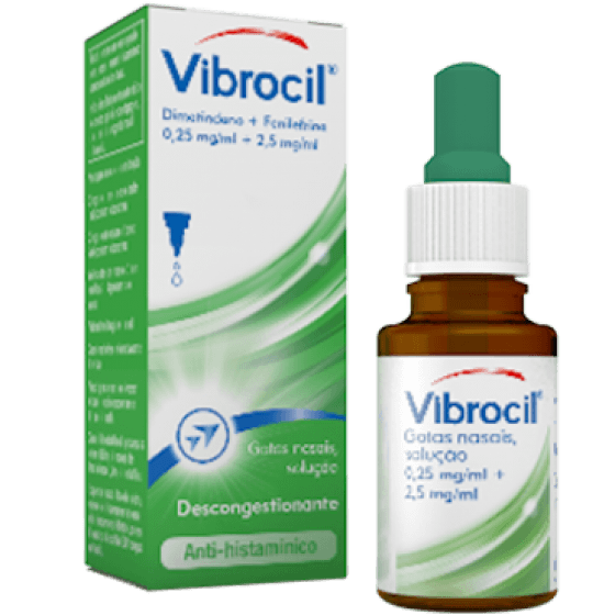 Vibrocil contém um descongestionante nasal (fenilefrina) e um anti-histamínico (maleato de dimetindeno) como substâncias ativas.